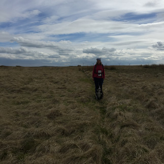 On reaching the edge of the bog on a rise up to a wall she threw herself at the bank face down and found two dogs using her as a way out of the bog! Not a happy lady! Fortunately, she quickly saw the funny side of life!